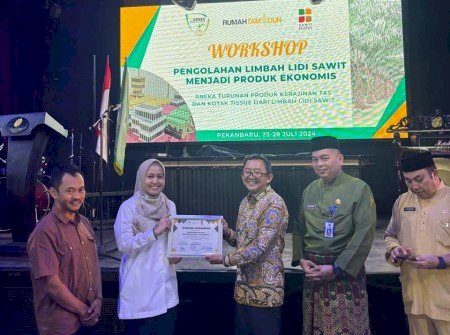 Untuk itu Helmi berharap semoga kegiatan ini bukan hanya memaparkan materi, namun juga menghasilkan sesuatu produk yang juga bermanfaat terutama dalam meningkatkan perekonomian masyarakat khususnya petani pekebun kelapa sawit. Kegiatan workshop tersebut juga diikuti oleh, Dinas Perkebunan Provinsi Riau dan Dinas Perindustrian, Perdagangan, Koperasi dan UMKM Provinsi Riau.(***)