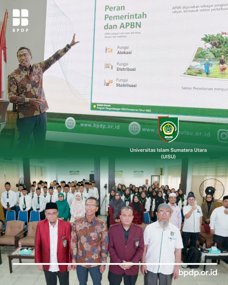 Medan – Badan Pengelola Dana Perkebunan (BPDP) terus memperkuat komitmennya dalam mencetak sumber daya manusia unggul di sektor perkebunan kelapa sawit. Melalui Program Pengembangan SDM Perkebunan Kelapa Sawit (SDM PKS), BPDP menggelar Kuliah Umum Serentak di enam kampus di Sumatera Utara, yaitu ITSI, UISU, UNPRI, PTKI, POLBANGTAN Medan, dan UTND.
